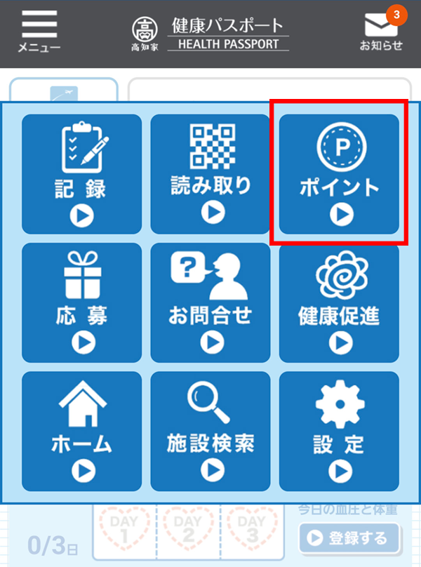 現在の仕様として、毎日血圧・体重・体調登録していただくことによってグリーンのヘルスポイントを取得するようになっております。